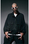 - Campera de microfibra elastizada, corte Oversize, con bolsillos frontales y estampa.